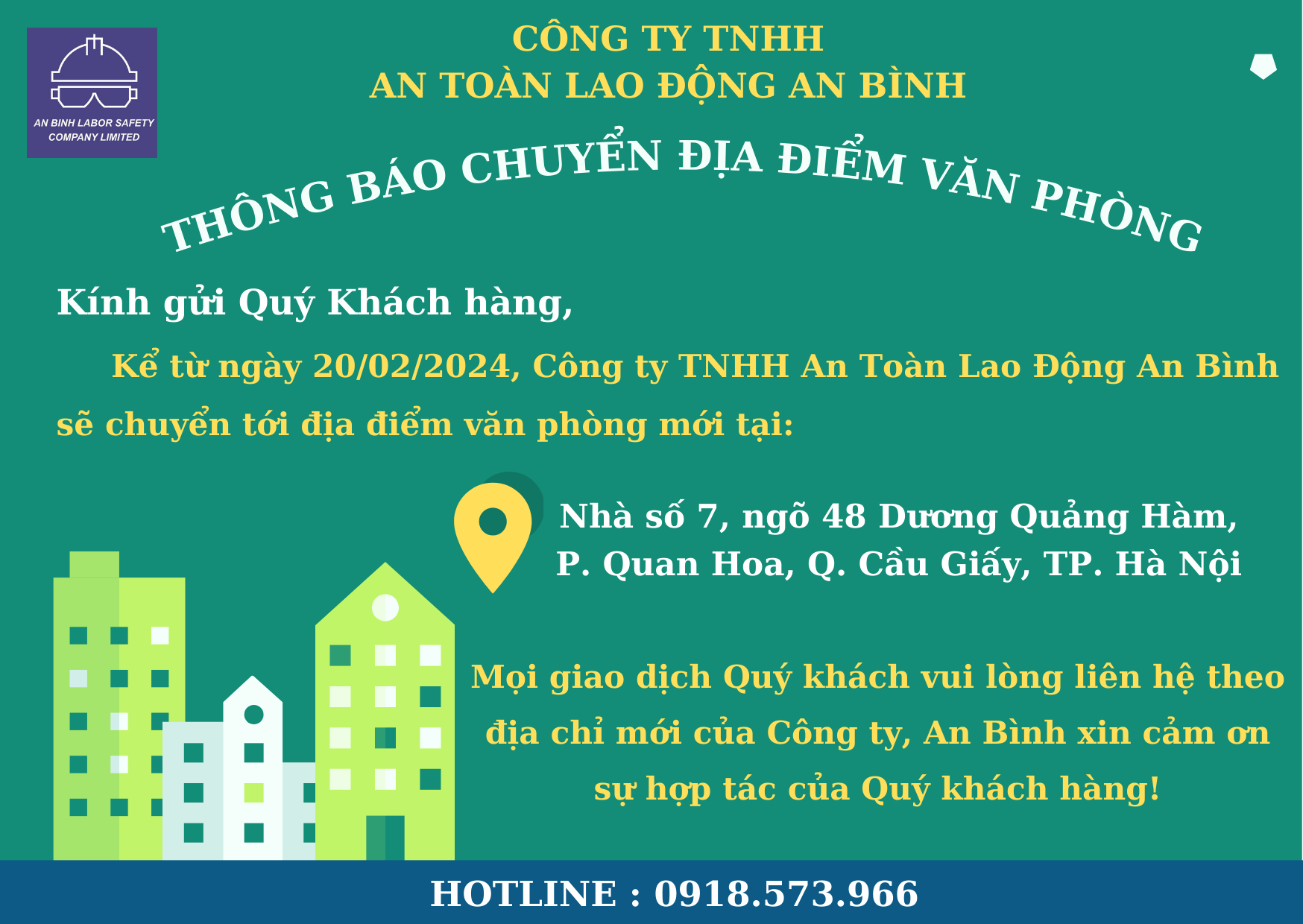 THÔNG BÁO CHUYỂN ĐỊA ĐIỂM VĂN PHÒNG